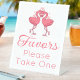 This wedding favor sign captures the joy of a tropical beach celebration! Featuring pink flamingos forming love hearts, it brings the romance of the ocean to life. Perfect for summer gatherings, Hawaiian luaus, or a destination wedding, it warmly invites guests to take home wedding favors while adding a romantic tropical touch to your décor.