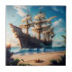 Tropical Beach Pirate Ship Tile