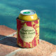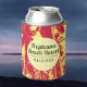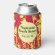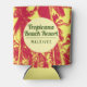 Tropical Beach Resort Can Cooler. Name of the Hotel or Beach Resort, together with its location. Tropical Palm Trees Design Can Cooler in Red and Yellow Colours. Leaf pattern design shows a silhouette effect pattern of leaves. Ideal for beach resort shops or holiday hotel promotions.