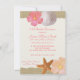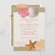 Beach bridal luncheon invitation with a vintage flare and the rustic look of burlap all accented with hibiscus, sand dollars and starfish, personalise text and fonts to suit your style.