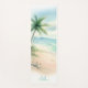 A chic, elegant, personalised yoga mat with a tropical beach waves theme, featuring a watercolor painting of a tropical beach, with blue ocean waves, golden sand, white starfish and a palm tree. A perfect gift for a girl, teen or woman - mum, your girlfriend, best friend or any special woman in your life who loves yoga, for a birthday, Christmas, Mother's Day or any occasion.
