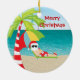 Tropical Beach Santa Palm Tree Christmas Ornament