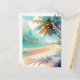 Send a slice of paradise with our Tropical Beach Scene Postcard. This stunning postcard features a serene painting of a beach with swaying palm trees, soft waves gently lapping the shore, and a horizon that invites endless daydreams. The watercolor effect adds a touch of artistic charm, capturing the essence of a peaceful tropical getaway.