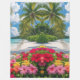 Wrap yourself in tropical tranquillity with this stunning beach scene blanket. Featuring a lush foreground of vibrant flowers in pink, red, and yellow hues, this design leads your eye to a pristine white beach and a crystal-clear turquoise sea. Gentle waves kiss the shore as floral beauty and ocean serenity blend seamlessly. Perfect for cosy evenings, summer décor, or simply daydreaming of paradise, this soft and vibrant blanket brings island bliss to your everyday moments. Ideal for beach lovers, nature enthusiasts, and anyone longing for a little sunshine.