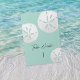 This modern and elegant tropical beach sea glass table card features three white sand dollars on a sea green background and elegant calligraphy script. This card is perfect for the couple having a tropical wedding, beach wedding, or other destination wedding in Hawaii, Florida, California, Mexico, the Caribbean, or any other tropical location. Photograph of the sand dollars and design © by TK Goforth, all rights deserved. Please contact me with any additional design customisations you may need for your beautiful wedding.