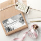 A sticker with a vintage etching of palm trees on a sandy beach and beautiful clouds over calm ocean waves. Click Customise It to add your name or message.