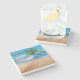 Stone coaster shown with a photo print of a beautiful tropical beach scene.