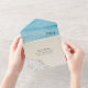 Perfect for destination beach weddings, these all in one coastal wedding invitations with tearaway RSVP fit your budget without sacrificing quality. The tropical beach background is a beautiful photo of blue ocean waves and white seafoam lapping on the shoreline.