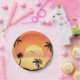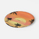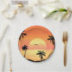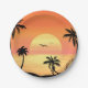 Tropical Beach Sunset Palm Tree Silhouette Art Paper Plate
