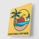 Change the text field to what you want. Using the editing tool, you can change the background colour, and the font and its colour and size, as you wish. See my store for more custom tropical destinations items.