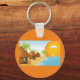 Tropical Beach Sunset with Thatched Huts Key Ring
