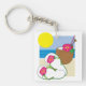 Tropical Beach Vacation Coconut Flowers Flip Flops Key Ring