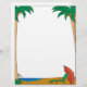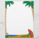 This vacation letterhead features a beach scene with palm trees on the side borders.