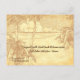 A custom return address postcard with a vintage etching of palm trees on a sandy beach and beautiful clouds over calm ocean waves, on a faux parchment background.