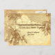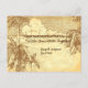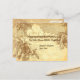 A custom return address postcard with a vintage etching of palm trees on a sandy beach and beautiful clouds over calm ocean waves, on a faux parchment background.