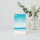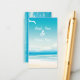 Teal blue Ocean and clear blue sky. Ocean waves crashing to the shore , seagulls flyng in the sky and a silhouette of palm trees - Fully Customisable Wedding invitations and matching extras.