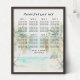 This elegant and beautiful watercolor wedding table seating chart features a beach, blue sky and palm trees. The text combines handwritten script and sans serif fonts for a stylish and modern look. This is perfect for a summer beach or tropical destination wedding.