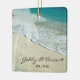 Create a keepsake gift for the newlywed bride and groom when you personalise the pretty Tropical Beach Wedding Ornament. This custom beachy marriage ornament features a scenic nature photograph of a turquoise or aqua blue ocean on the white sand shore with a palm tree and swirl design adorning the corner. Perfect to commemorate a casual yet classy island destination or tropics wedding theme.