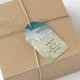 Thank your wedding guests for being a part of your island destination marriage ceremony and reception when you attach the Tropical Beach Wedding Favor Tag to their party favor or small gift. These beachy custom wedding favor tags feature a scenic nature photograph of the turquoise or aqua blue ocean on the white sand shore with a palm tree and teal swirl design adorning the corner.