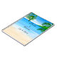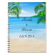 Beach theme Wedding Guest Book with tropical blue waters and palm trees. Great wedding book for beach or destination weddings. Beach art featuring a sandy beach, palm trees,and tropical blue waters background for your personalised invitation. Matching Invitations, Thank You's, and additional wedding products available.