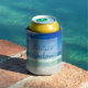 This beautiful beach wedding can cooler features a gorgeous photo of the ocean waves for a destination wedding. Pretty beach photography paired with elegant white and blue typography creates a chic, modern look for a tropical island event. Lovely personalised seaside reception favour.