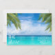 Tropical blue waters beach scene wedding save the date for your destination wedding. Customise with your names, wedding date and location and add your photo on the back.