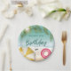 Tropical Beach With Palm Leaves Summer Birthday Paper Plate