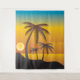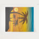Tropical beach scene backdrop with palm tree silhouettes and sunset over the ocean. Use for decor or for a luau or beach theme party or event. Also makes a fun selfie background.