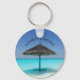 Tropical Beach with Thatched Umbrella Wedding Key Ring