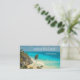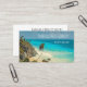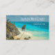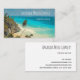 Business cards with a beautiful photo featuring Tulum, Mexico. Turquoise waters on a sandy shore. Wind swept palm trees blowing in the breeze near a craggy cliff side. Soothing and relaxing.