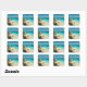 Birthday thank you stickers with a beautiful photo featuring Tulum, Mexico. Turquoise waters on a sandy shore. Wind swept palm trees blowing in the breeze near a craggy cliff side. Soothing and relaxing.
