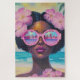 stunning and vibrant portrait of a stylish woman wearing oversized pink sunglasses reflecting a dreamy tropical beach. Surrounded by soft hibiscus flowers and set against a turquoise ocean backdrop, this artwork captures the essence of summer, beauty, and empowerment. Perfect for beach lovers, fashion-forward art collectors, and tropical-themed decor.