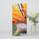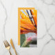Slim style wedding reception menu that features the photo image of a beautiful, orange Bird of Paradise Plant bloom. Menu text is printed in white lettering and includes bride and groom names, date, and a listing of all menu items. Personalise your menu by editing and replacing all required fields. Reverse side of menu is a complementing orange colour. Select your menu style. A lovely, floral design perfect for a tropical wedding locale! Designed to coordinate with our Tropical Bird of Paradise Floral Wedding collection.