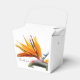 Thank you wedding event guests with these take-out favour boxes that features the photo image of an orange bloom of the tropical Bird of Paradise Plant printed on a white background. Also referred to as a Crane Flower. A lovely, floral design for a tropical themed wedding or luau.