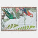 Tropical birds (parrots) surrounded by foliage and flowers including large-leaf calathea and bird-of-paradise. Great design for nature lovers, Caribbean / tropics lovers, coastal details, island themed details, and animal lovers.