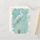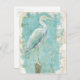 An egret resting on pole on a teal watercolor background. Artist : Sue Schlabach