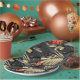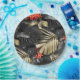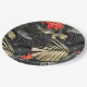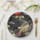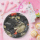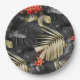 Tropical Black & Gold Leave and Red Flowers Paper Plate