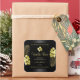 Make a lasting impression with this elegant and exotic product label design featuring shimmery gold hawaiian flowers and palm leaves on a black background. A cool palm leaf shadow matching to the border frame .