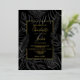 Tropical solid black on black leaf watercolor real gold foil script wedding, a modern hand painted exotic and tropical deep green leaves, monstera, palm tree and a chic luxurious real gold frame border with a modern and elegant calligraphy script. Perfect for destination and beach weddings themes.