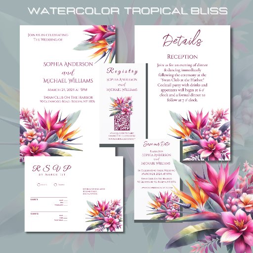 Watercolor Tropical Bliss Wedding CollectionDesigned by Art Colory