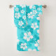 Tropical Blue and White Hibiscus Flower Pattern Bath Towel Set
