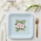 Tropical Blue Pink Hibiscus Floral Wedding Paper Plate