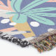 A quality printed throw has its advantages. This is a much finer weave throw than its loopier cousins, and though lighter, it is worth the investment for custom room accessorizing. The back is much prettier than the typical brown, and the fringe on the long sides very vivid, the selvage nicely done. Before photographing, I washed the throw in cold water, delicate, with a thicker woven throw the same size. On tumble dry low, this throw was dry in half the time as the other. This is a very practical quality if you use throws for furniture covers or to wrap up in frequently. The sleekness of the fabric makes it a great layer for accenting or protecting without the feeling of sitting on too much stuff. Perfect for napping or when you feel a light chill coming on. The color printing is beautiful and on this fabric, matched the design and color of my Photoshop image. This is an advantage for blending room fabrics and colors. The fringe on the short sides prints the colors from the design image and therefore varies from the side fringe. I streaked a white fractal line through the plaid pattern to give the illusion of weaving. This printed as crisp as an illusory thread, and put some white in the short side fringe, showing another advantage of print vs loomed- for artistic purposes, line lines, detail, and color integrity can be planned and preserved. My loomed throws have color limitations and more of a needlepoint texture. Print throws reproduce an exact image. The throw felt a little stiff straight out of the package, but this went away in the first delicate wash. Of course I searched the wash water for ink or bleeding and there was none.
