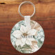 Tropical Blue White Flowers Wedding Key Ring