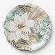 Tropical Blue White Flowers Wedding Paper Plate