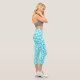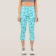A beautiful pattern of tropical hibiscus flowers in shades of blue with white on custom, women's capri leggings.. The bright colours of hibiscus in my own garden inspired me to create this design. These cute and comfortable leggings are great for relaxing in, workouts, or anytime you want a tropical vibe. Their shorter pant length makes them perfect for spring and summer. This pattern can be resized to make the flowers large or small so it's just right for you!