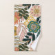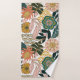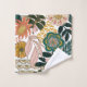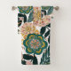 A modern boho style towel set with painted tropical stylised florals and greenery.