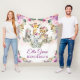 Adorable jungle-themed blanket featuring cute safari animals and elegant watercolor tropical greenery and flowers in blush and violet. Matching items available in our store!