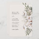 Chic and modern, this stylish wedding invitation features beautiful hand-painted watercolor tropical cream and ivory flowers with sage green palm leaves arranged as a trendy bouquet. The background is beige and the text is black. The back of the invite includes the same artwork. Find matching items in the Tropical Boho Wedding Collection.