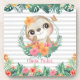 Tropical Borders Hibiscus Flowers Sloth Custom Coaster